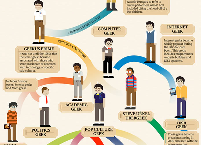 From someone who bites the heads of chickens to today’s Geek Chic, we present the evolution of the geek….