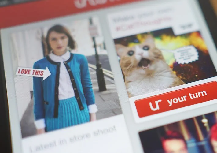 The key feature of Urturn is its library of “expressions” – ready-made templates that can be personalised by users. Images can be personalised with doodles, captions or music clips to create collages or invite other users to vote on sets of pictures (e.g. two different shoes).