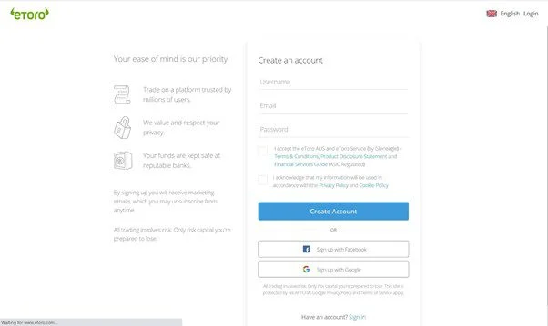 Go to the eToro homepage, and click on “Join Now.” Enter your email and password, and confirm your email.