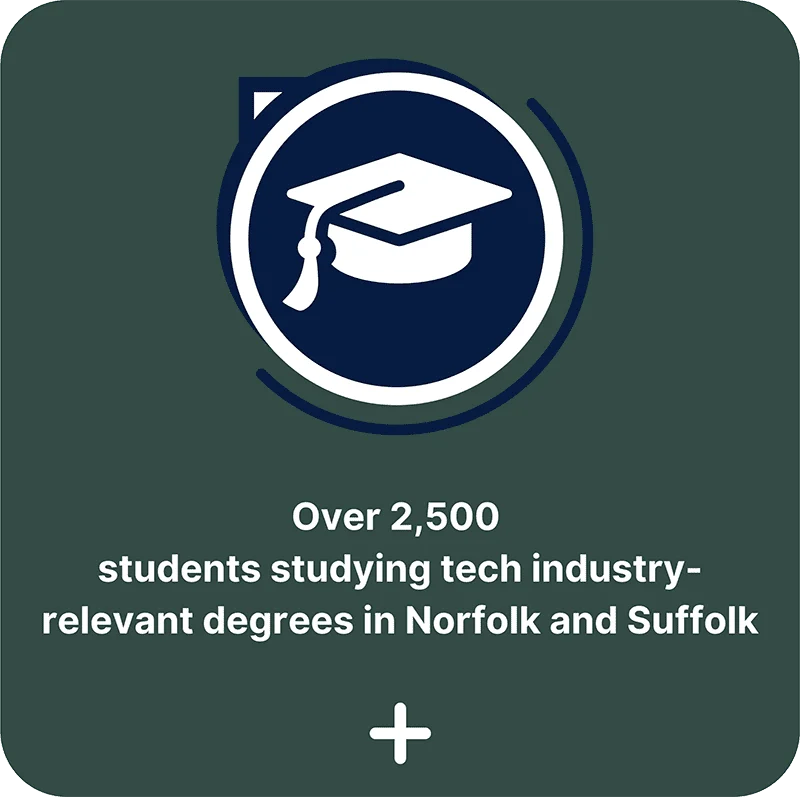 From pre-start and start-up to scale-up and global expansion, Norfolk and Suffolk is positioned to provide space, services and support to tech businesses that choose to do business here, whatever stage in their growth journey.